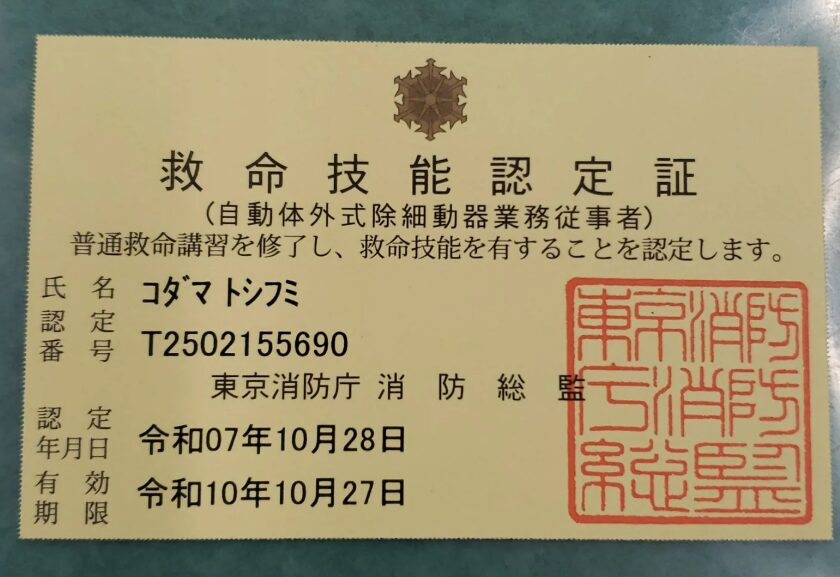 荏原法人会主催の救命手当講習会に参加してきました。AEDの使い方や気管に異物が詰まった時の対処法などを、みっちり4時間学んできました。